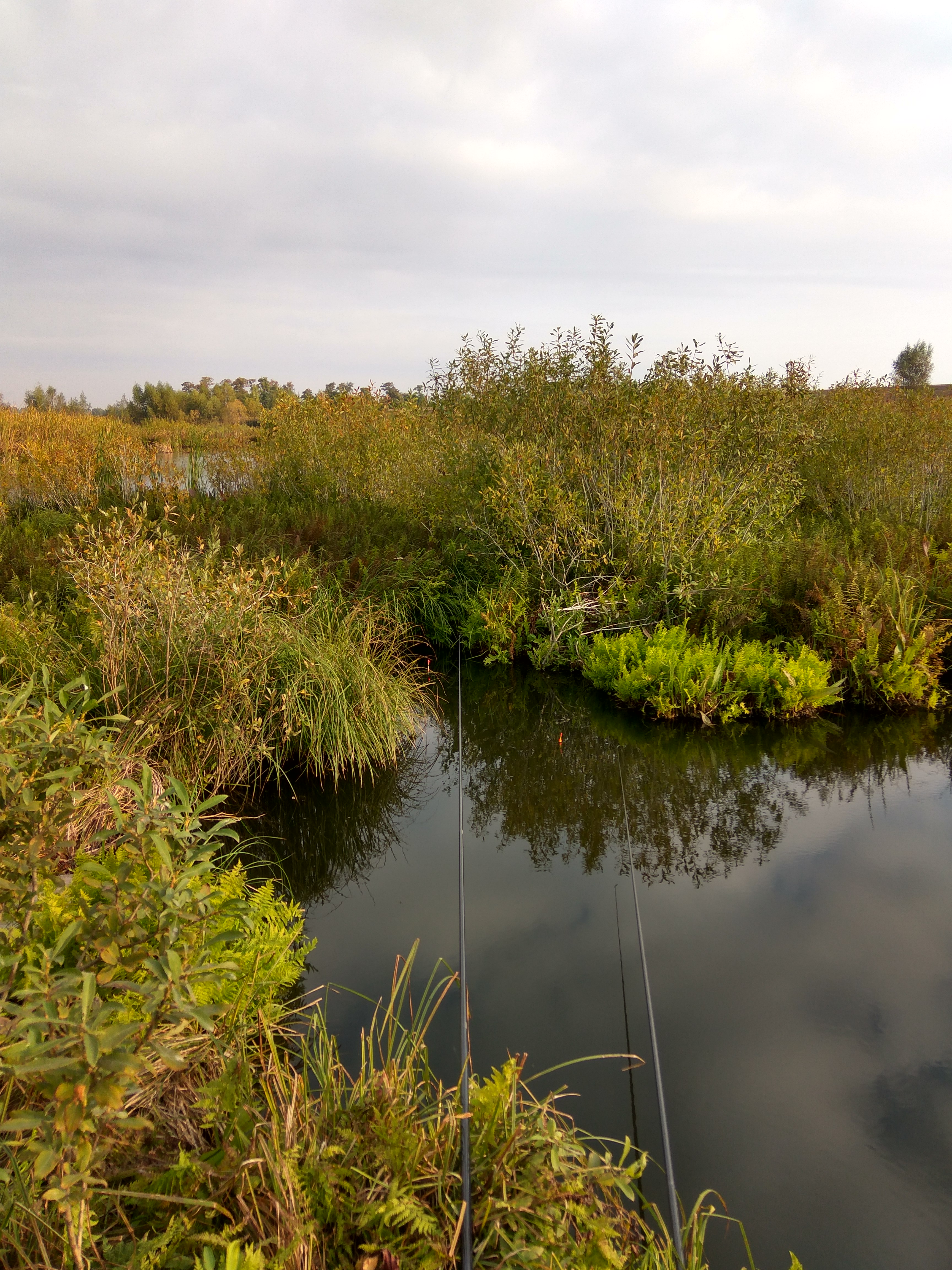 За всё утро 2-3-ри поклёвки. В основном рыбачил с берега, минут сорок ближе к концу рыбалки ловил с воды. Прикормка: пшено+сечка кукурузы+макуха, пшено+сечка кукурузы+свежераздавленные поджаренные семена льна. Наживки: кукуруза, манка, красный червь, он же+пенопласт, опарыш, мастырка. Вероятна причина отсутствия клёв - предшествующее рыбалке понижение температуры воды до 14-15 градусов, что напрочь отбило аппетит у карповых.